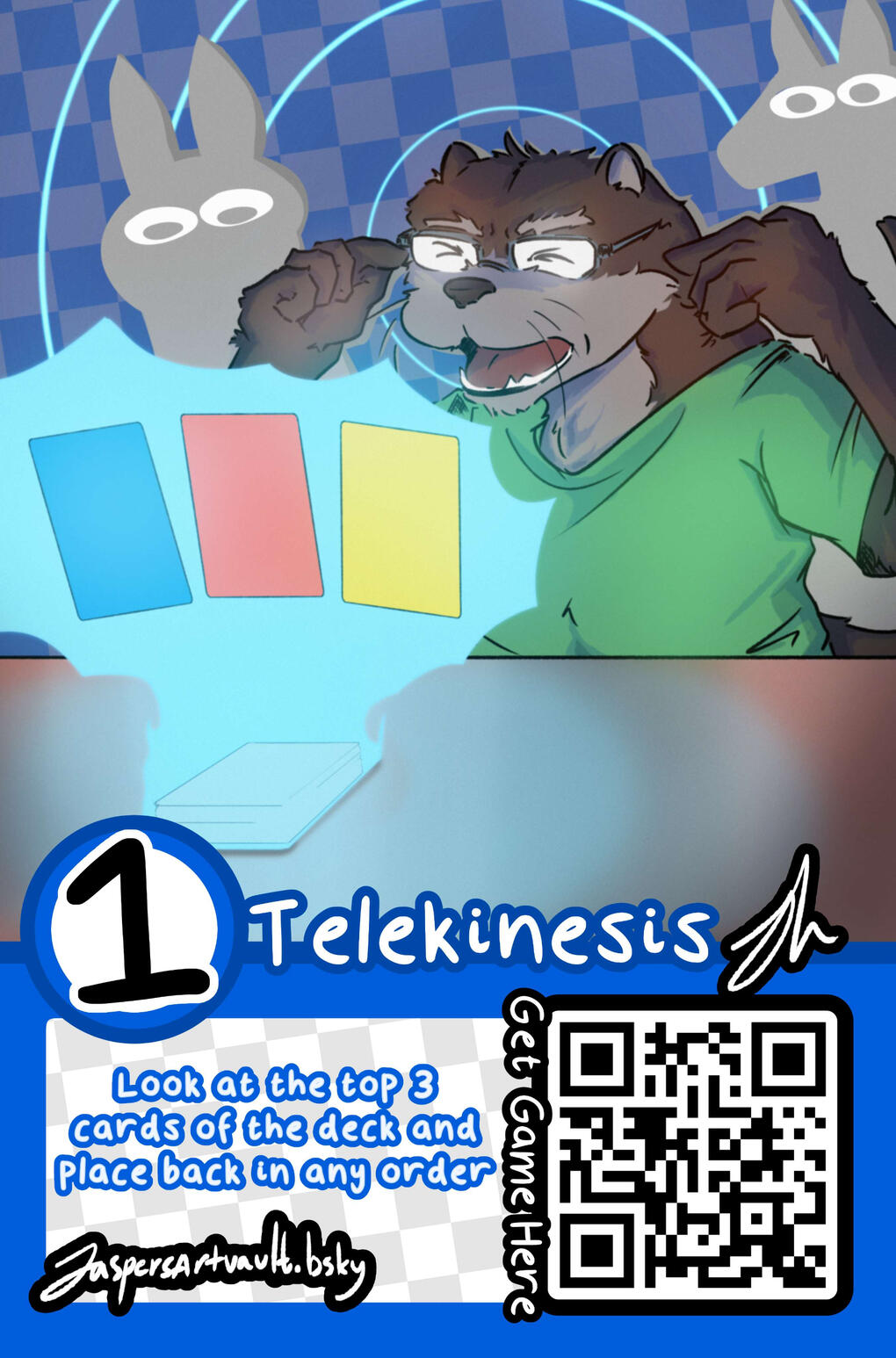 17 Amazing Artists came together to make amazing art for this game! Get a copy of their card at their respective tables at cons!
